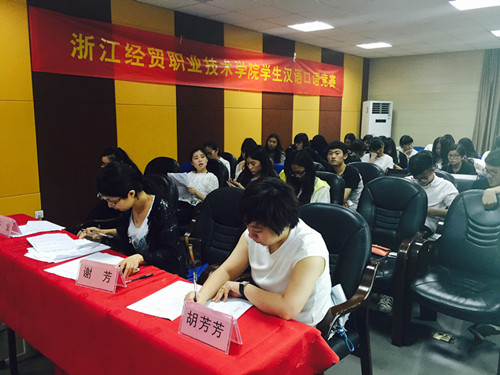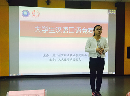 为提升大学生汉语口语表达能力,培养大学生的思维能力和阅读能力,由学院团委主办,人文旅游系团总支承办的大学生汉语口语大赛暨第三届浙江省大学生汉语口语竞赛选拔赛于2015年5月18日晚在3D实训室隆重举行。人文旅游系副主任谢芳老师,人文旅游系团总支书记胡芳芳老师以及部分学生代表参加了此次活动。 经过系赛的重重选拔,来自五个系的12位选手进入了最终的决赛。决赛分为古文和现代文的朗诵讲解与备稿演讲两个环节。选手们都以良好的姿态展示了自己的风采,表达了自己对文章的见解。既有深刻哲理的阐述,也有温暖人心的人生讲解,更有古文意蕴的表达让大家走人古文化的世界。 最终,国际贸易系的蒋一苇和财务会计系斩获了本次比赛的一等奖,金凌驾、张墨柯、胡晓燕、王�获得二等奖,江彤彤、陈柏儒、温馨婷、俞彤、陈燕、陈露莎获三等奖。获得一等奖和二等奖的6位选手也将代表我院参加第三届浙江省大学生汉语口语竞赛。