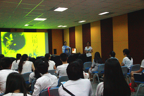 6月24日下午,人文旅游系在3D实训室为人文学堂班和礼仪训练班学员们开设了“汉服和礼仪”专题讲座。讲座由人文系副主任谢芳老师主讲,40多位学员聆听了讲座。